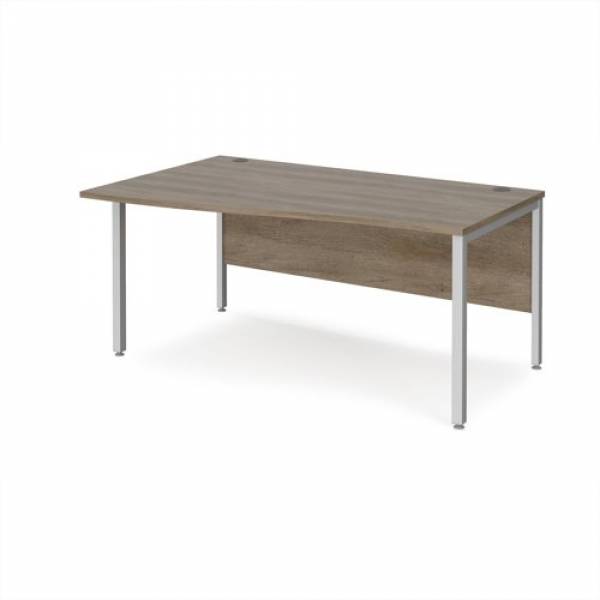 Maestro 25 left hand wave desk 1600mm wide - silver bench leg frame, Nebraska Oak top