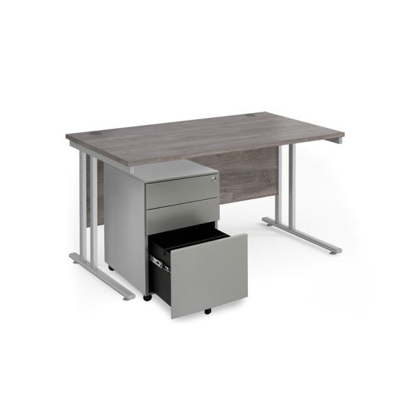 Maestro 25 bundle straight 1400 desk, silver leg frame and silver steel ped - Grey Oak