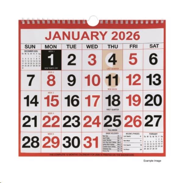 Wirebound Month to View Calendar 249x231mm 2026 KFYC2226