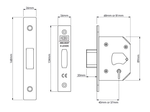 | Backset: 45mm. This is the measurement from the edge of the door to the centre of the keyhole. |